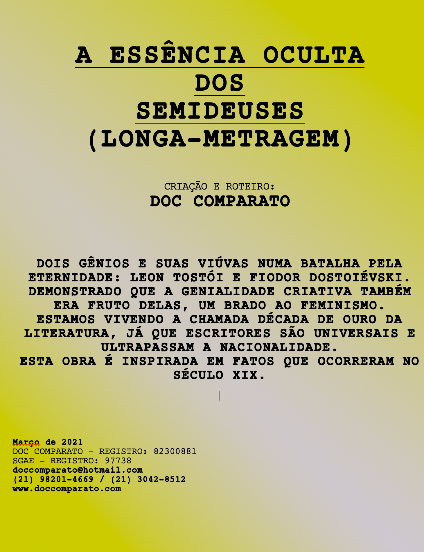 ROTEIROS, PROJETOS E SÉRIES INÉDITAS AINDA NÃO PRODUZIDOS.